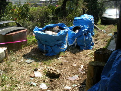 庭に放置された4年分の震災ガレキ。すごい量です。